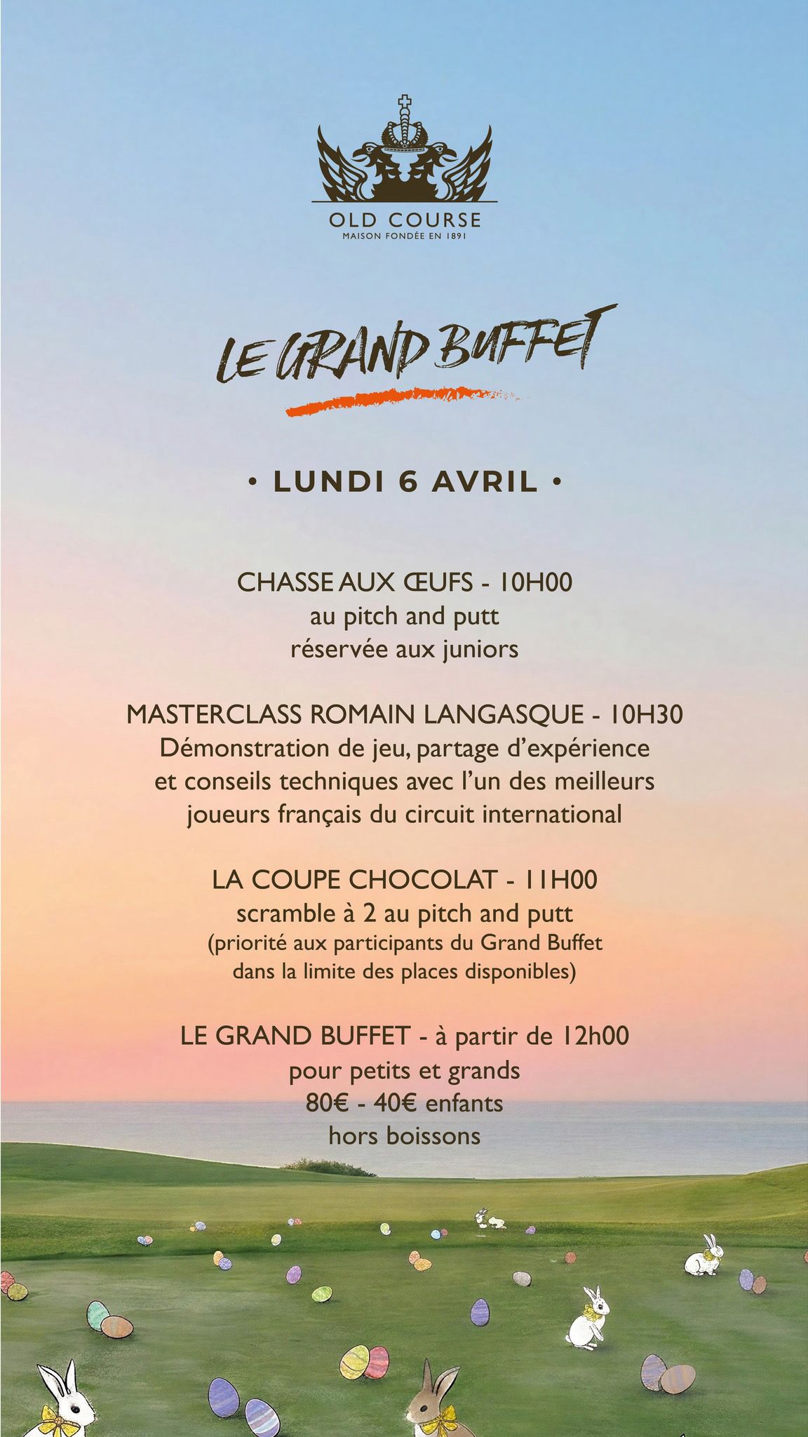 La journée débute à 10h00 avec une chasse aux œufs organisée sur le pitch & putt, spécialement dédiée aux plus jeunes.